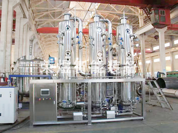 三效多級蒸發器,是一種采用列管式強制循環外加熱工作原理,物理受熱時間短、蒸發速度快、濃縮比重大,有效保持物料原效,廣泛適合于制藥、化工、食品、輕工等的液體物料的蒸發濃縮工藝過程,特別適用于高鹽廢水處理。