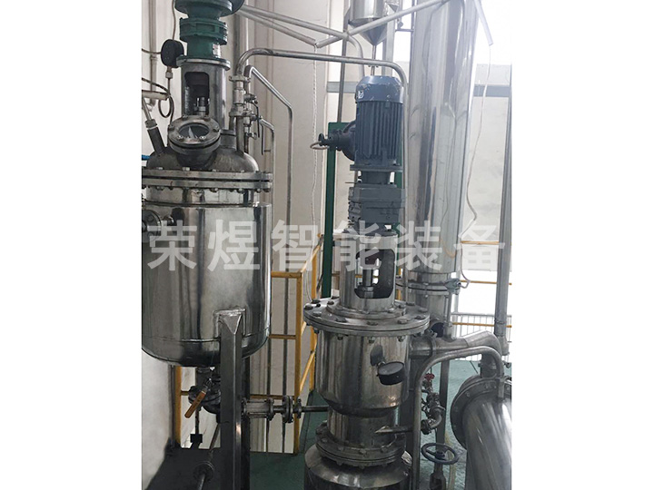 結(jié)構(gòu):本設(shè)備主要包括薄膜蒸發(fā)器、內(nèi)置冷凝器、二級(jí)冷凝器、原料罐、成品罐、低沸點(diǎn)罐、高沸點(diǎn)罐等部件組成,全部由不銹鋼制造。
